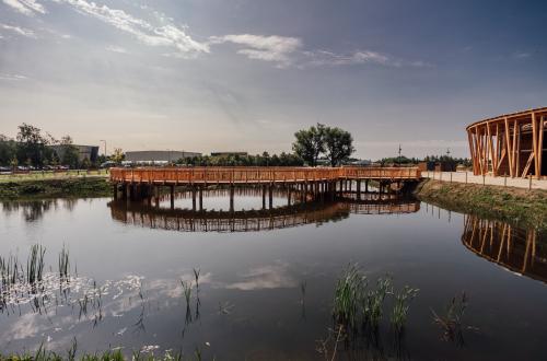 Teren wokół tężni jest zadbany i zielony, co sprawia, że spacer tutaj to świetny sposób na chwilę relaksu po pobycie w Termach albo po aktywnej wycieczce.
